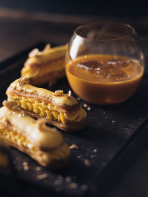 Чтобы создать водяную баню, доведите до кипения кастрюлю с водой. Дно чаши не должно касаться воды. Взбейте яичные белки, соль и сахар в миске на водяной бане вручную до тех пор, до полного растворения сахара. Снимите кастрюлю с водяной бани и взбивайте в течение 20 минут, чтобы приготовить безе. | | | Теперь постепенно добавьте мягкое сливочное масло. После того как вы добавите примерно половину масла, крем будет выглядеть так, как будто оно развалилось – это нормально. Продолжайте взбивать, добавляйте оставшееся масло и взбивайте миксером до тех пор, пока крем не станет кремообразным. Теперь тыквенный крем в кондитерский мешок с зубчатой насадкой. Разрежьте эклеры пополам вдоль и отсадите крем на основание. Положите верхнюю часть эклера и поставьте в холодильник на 15 минут. Растопите на водяной бане белую шоколадную глазурь, добавьте в нее Mozart Pumpkin Spice и окуните эклеры. Украсить измельченным фундуком и сусальным золотом. | | | Желаем вам сладкой осени! А за Mozart Pumpkin Spice приходите в наш бутик или ознакомьтесь с ним на сайте. | | | | Wine&Liquor Stash: Звонарский переулок, 7 стр. 1 с 12:00 до 21:00 c понедельника по субботу.